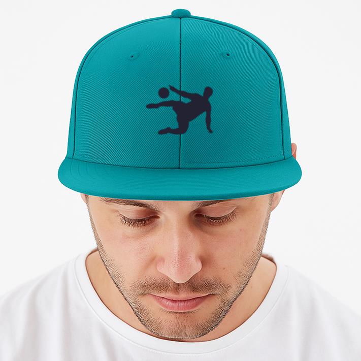 The Soccer Player Passing Silhouette Snapback Hat Snapback Hat is a timeless streetwear essential, built with a structured 6-panel silhouette and a durable cotton or cotton-blend twill fabric. The flat brim adds a bold, modern edge, while the adjustable snapback closure allows for a personalized fit.