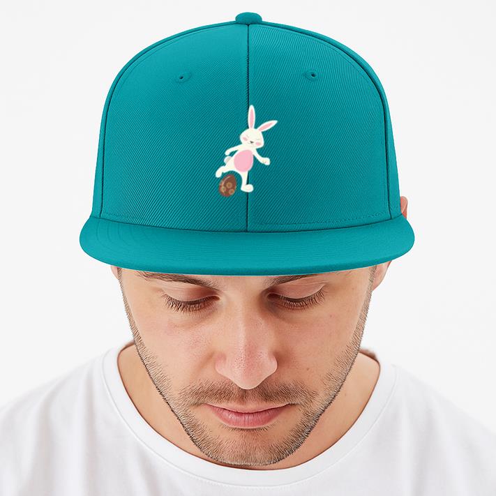 The Soccer Rabbit Easter Egg Kick Snapback Hat Snapback Hat is a timeless streetwear essential, built with a structured 6-panel silhouette and a durable cotton or cotton-blend twill fabric. The flat brim adds a bold, modern edge, while the adjustable snapback closure allows for a personalized fit.