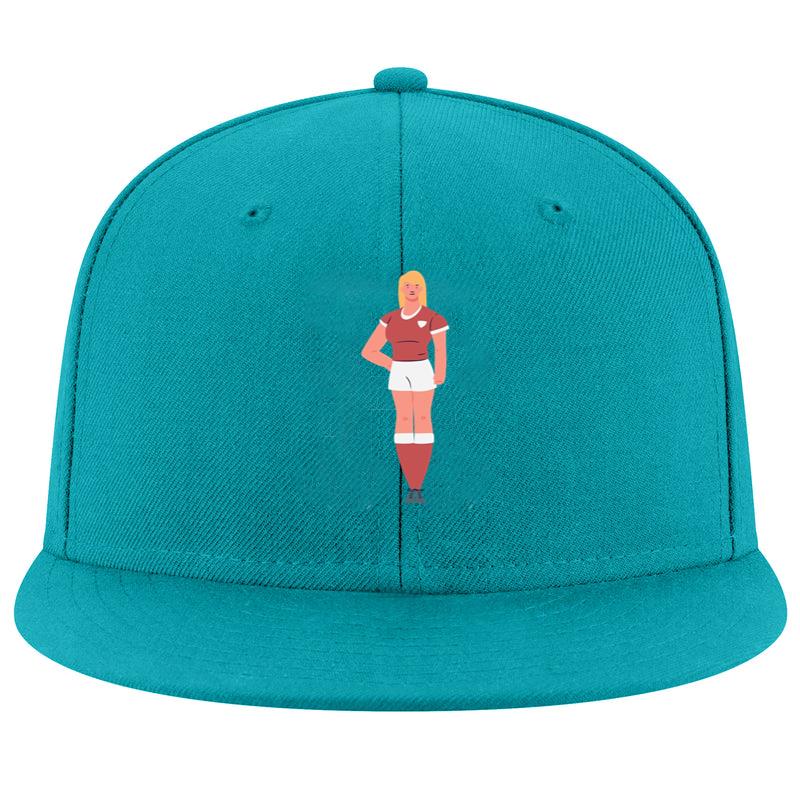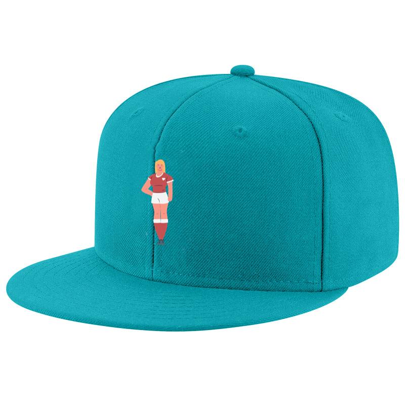 The Soccer Woman Player Standing Snapback Hat Snapback Hat is a timeless streetwear essential, built with a structured 6-panel silhouette and a durable cotton or cotton-blend twill fabric. The flat brim adds a bold, modern edge, while the adjustable snapback closure allows for a personalized fit.