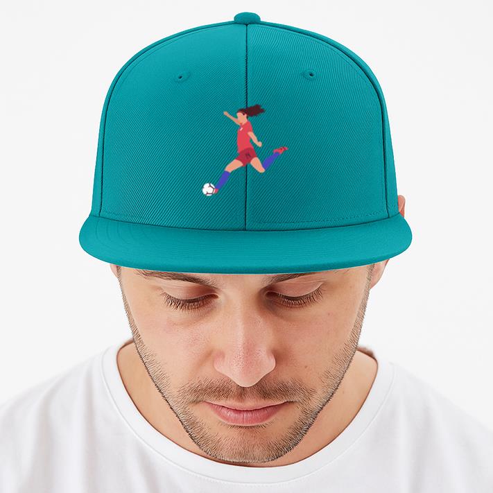 Woman Soccer Player Kicking Football Flat Snapback Hat